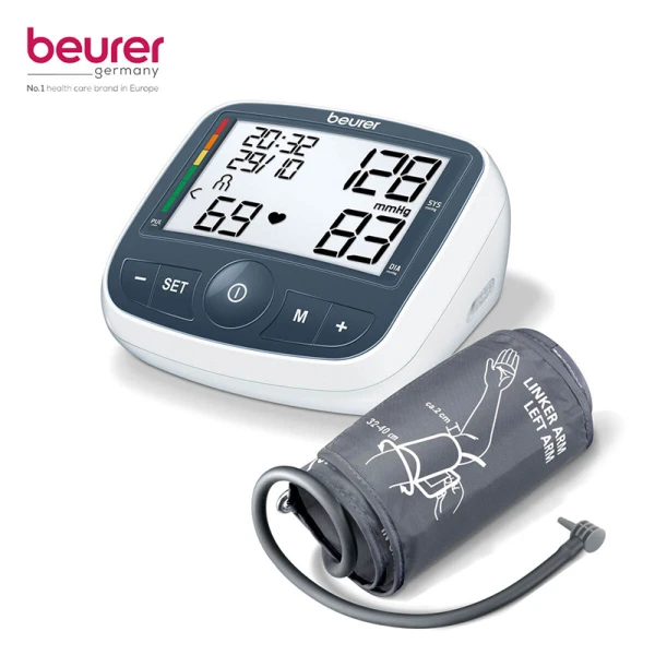 فشارسنج دیجیتالی BM40 از کمپانی بیورر از نمونههای بازویی این برند نامی آلمانی است که در تولید دستگاه های سلامت و بهداشت یکی از برترینها در تمامی دنیا بشمار میآید. این مدل قابلیت ذخیرهی اطلاعات تا 60 تست را داشته و برای 2 کاربر مختلف دارد. همچون بسیاری از فشارسنجها علاوه بر محاسبهی فشارخون بر روی مانیتور، قابلیت نمایش ضربان قلب نیز در وجود دارد و دارای سیستم خاموشی خودکار پس از مدتی استفاده نکردن است. BM40 با طراحی و رنگ بسیار زیبا و با صفحه نمایش بزرگ و خوانا تبدیل به گزینه ای ایده آل برای افرادی شده که به سلامت خود و کیفیت محصول توجه بسیاری دارند. همانطور که بسیاری از افراد مبتلا به بیماری فشارخون در جریان هستند فشارسنجهای بازویی به نسبت فشارسنجهای مچی از دقت بالاتر و درصد خطای کمتری برخوردار است و به فرد امکان کنترل دقیقتری از شرایط خود میدهد. در چنین افرادی با این نوع بیماری مراقبت و کنترل در درجهی اول اهمیت قرار دارد و نمیتوانند با خریدی بی دقت سلامت خود را به خطر بیندازند.