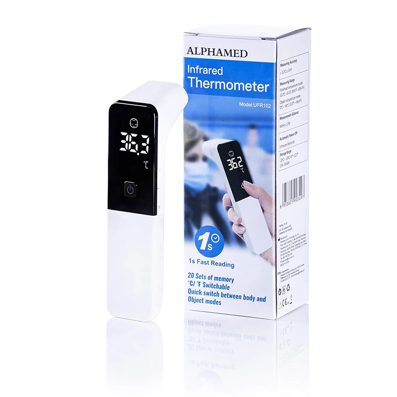 تب سنج دیجیتال گوش و پیشانی آلفامد 102 با دقت اندازهگیری بسیار بالا می باشد و مناسب برای اندازهگیری درجه حرارت بدن و اجسام بدون نیاز به تماس با استفاده از تکنولوژی مادون قرمز است.