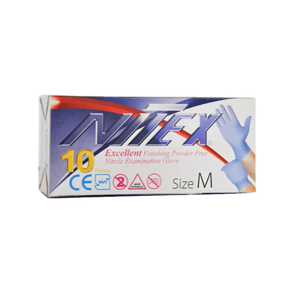 دستکش نیتریل نیتکس nitex دارای ویژگی یکبار مصرف بوده و به صورت غیر استریل عرضه می گردد، بنابراین در تمامی موارد از جمله مصارف عمومی حرفه ای، آرایشگاه ها، آشپزخانه ها و آزمایشگاه ها می توان از آن ها استفاده کرد. این محصول دارای سایز بندی اسمال، مدیوم و لارج است که می توانید با توجه به سایز دست خود آن را انتخاب نمایید. دستکش بدون پودر نیتریل نیتکس، جهت حفظ بهداشت و جلوگیری از انتقال میکروب ها و به طور کلی آلودگی ها بسیار مناسب بوده و خصوصا در دوران شیوع کرونا بسیار پرکاربرد می باشد. همچنین برای محافظت از پوست دست خود در برابر عوامل مضر همچون مواد شیمیایی می توانید از این دستکش ها استفاده نمایید.